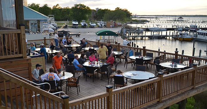 With a steady bay breeze and beautiful view of the Ocean Springs bridge, the East Deck is great for kicking back with family and friends.